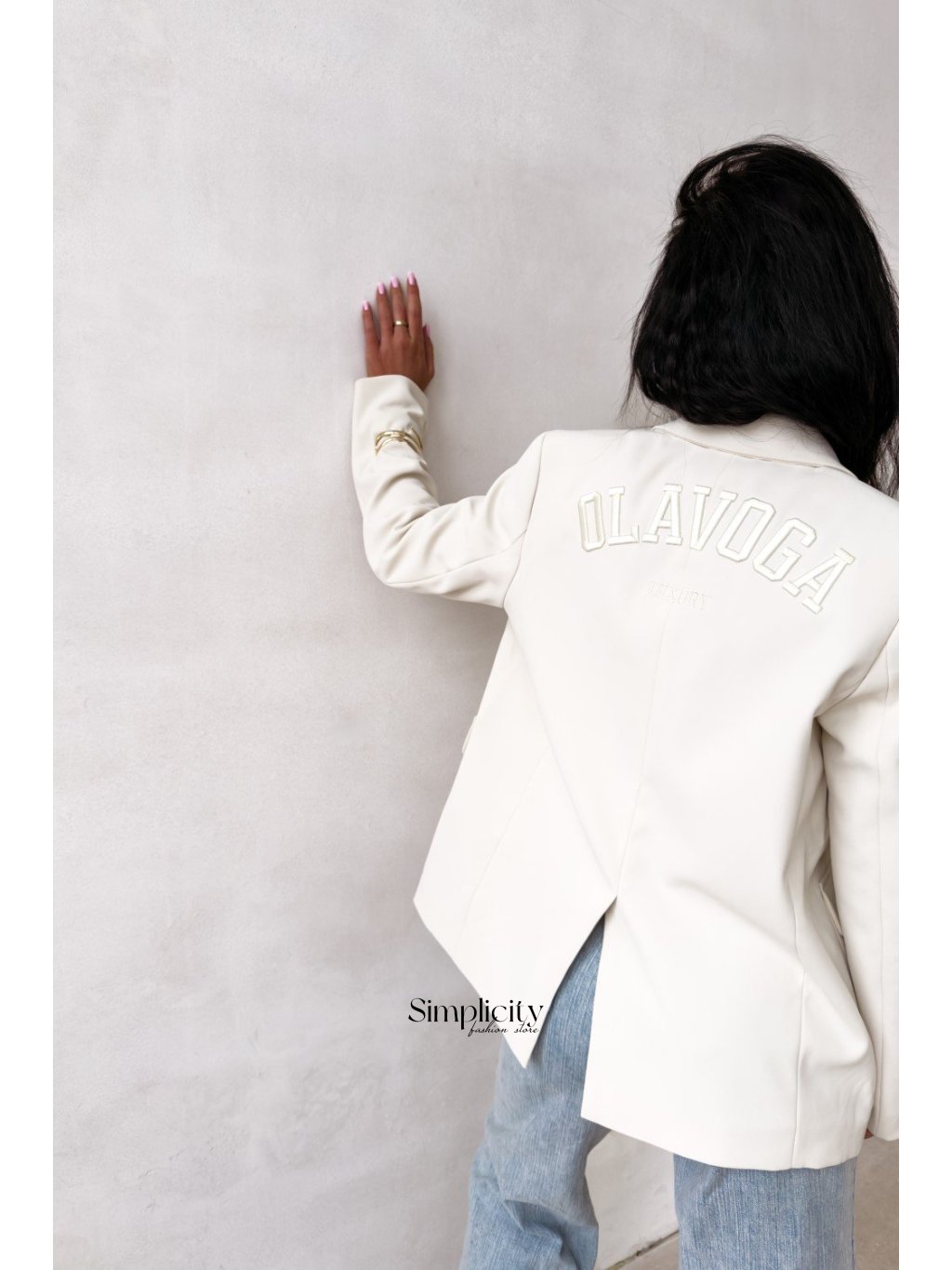 Chrbát: Skutočný „wow“ faktor – veľkolepá, reliéfna (wypukły) výšivka s logom OLAVOGA a nápisom „LUXURY“.