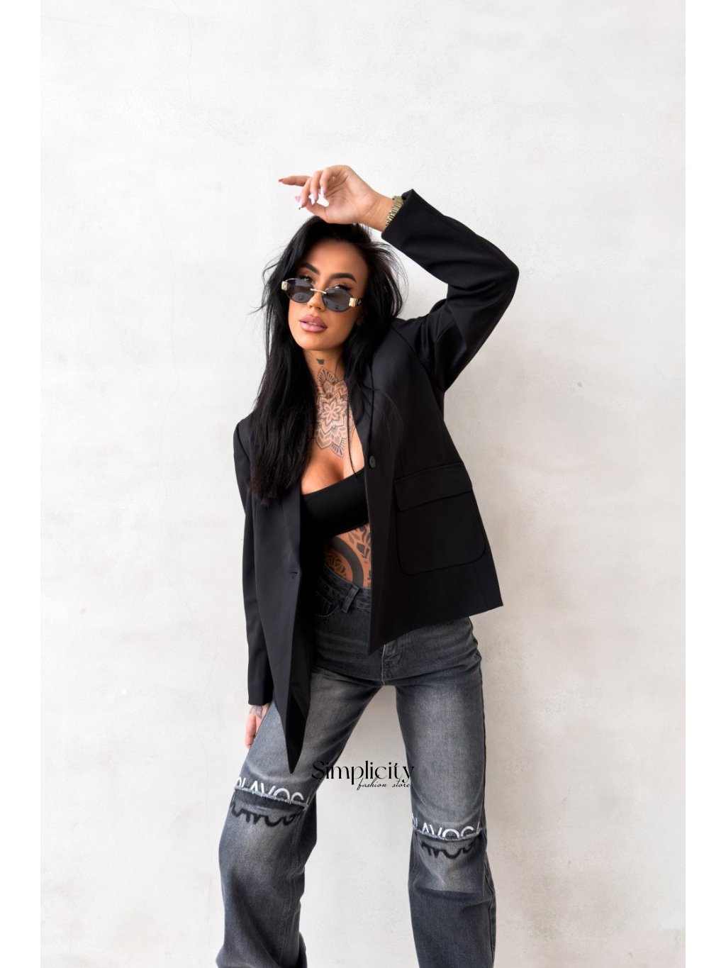 Strih: Moderný, mierne nadrozmerný strih, ktorý je pohodlný aj štýlový zároveň.Detaily: Zapínanie na jeden gombík, klasický golier a klopy a elegantné vrecká s klopou vpredu.
