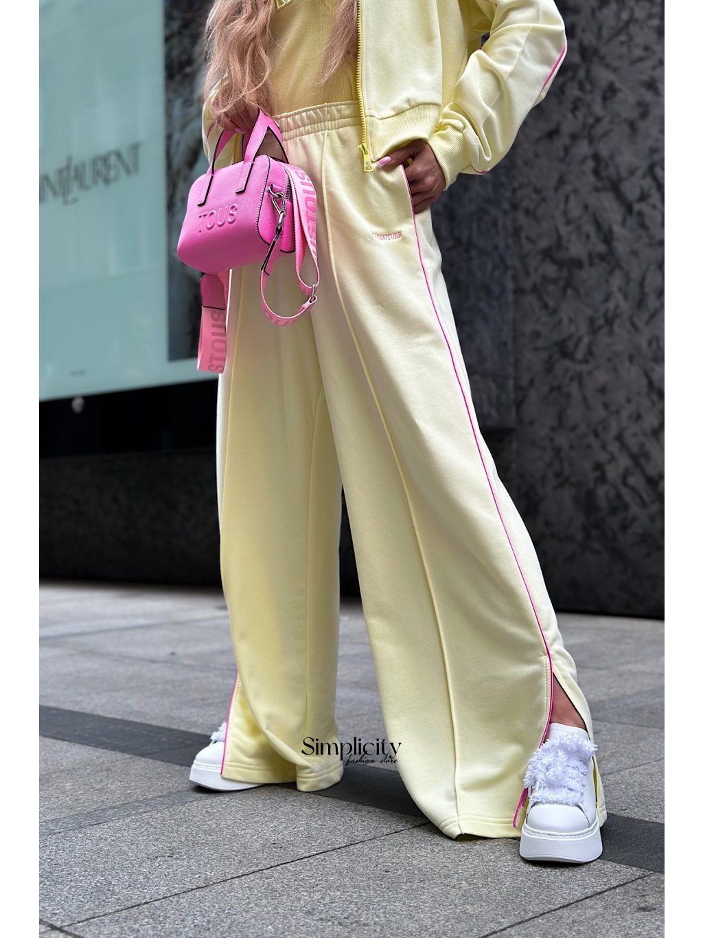 Široké nohavice s rozparkom v spodnej časti – dokonalá rovnováha medzi ležérnosťou a štýlom.