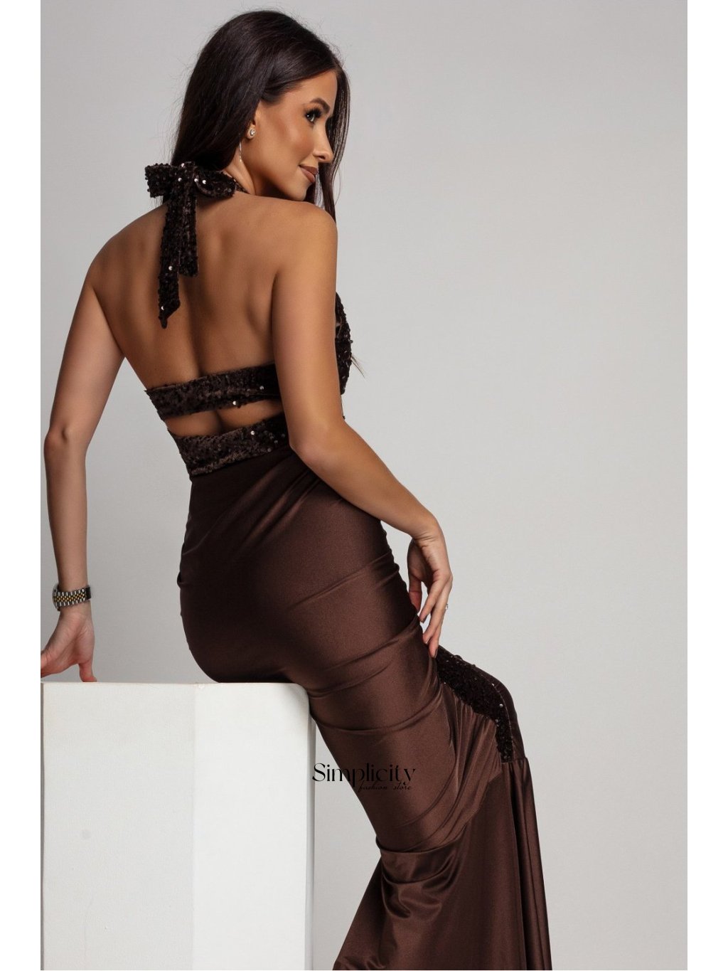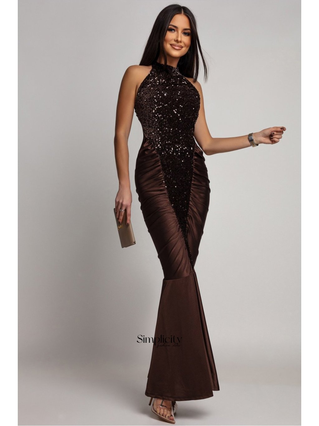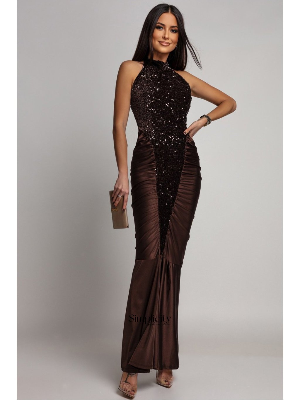 Dlhé, flitrované ležérne šaty. Priliehavý strih a skladané bočné panely šiat krásne zvýrazňujú postavu, zatiaľ čo trblietavá vsadka vytvára skutočne večerný vzhľad.