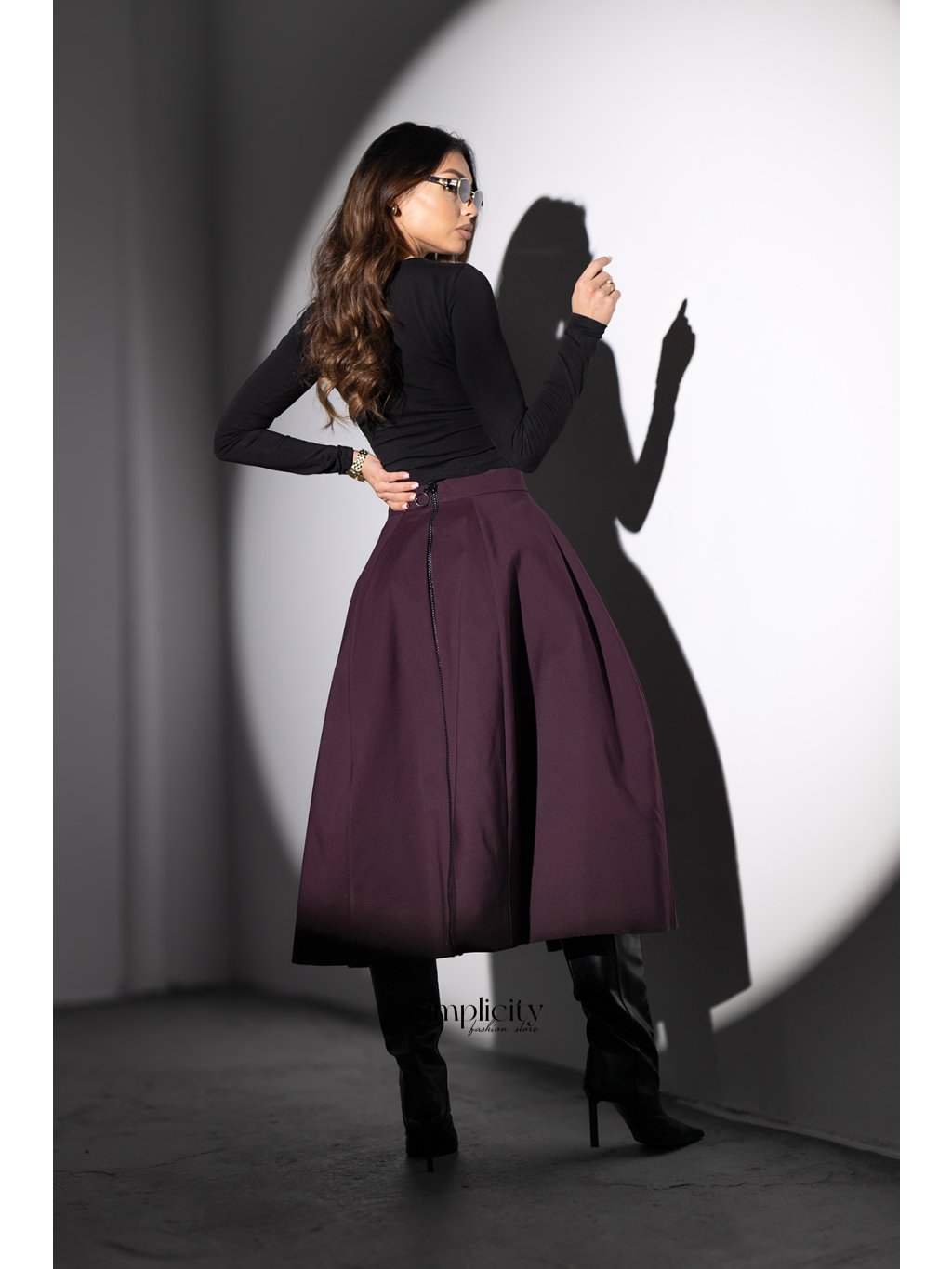 Táto jedinečná sukňa je vyrobená z vysoko kvalitnej, hladkej textúrovanej látky, ktorá zaisťuje pohodlie a výrazný vzhľad pre každú príležitosť. Model midi má zapínanie na zips po celej dĺžke, ktoré nielen uľahčuje obliekanie, ale dodáva sukni aj moderný nádych. Jej všestranný strih lichotí postave, zatiaľ čo bordová farba dodáva hĺbku a eleganciu, vďaka čomu je perfektnou voľbou pre špeciálne udalosti aj každodenné outfity. Hollywoodska sukňa sa krásne hodí k rôznym kúskom šatníka – od elegantných blúzok až po ležérne tričká – čo vám umožní vytvoriť si módne a štýlové outfity. Je to nevyhnutnosť pre ženy, ktoré chcú spojiť pohodlie s módnym vzhľadom.