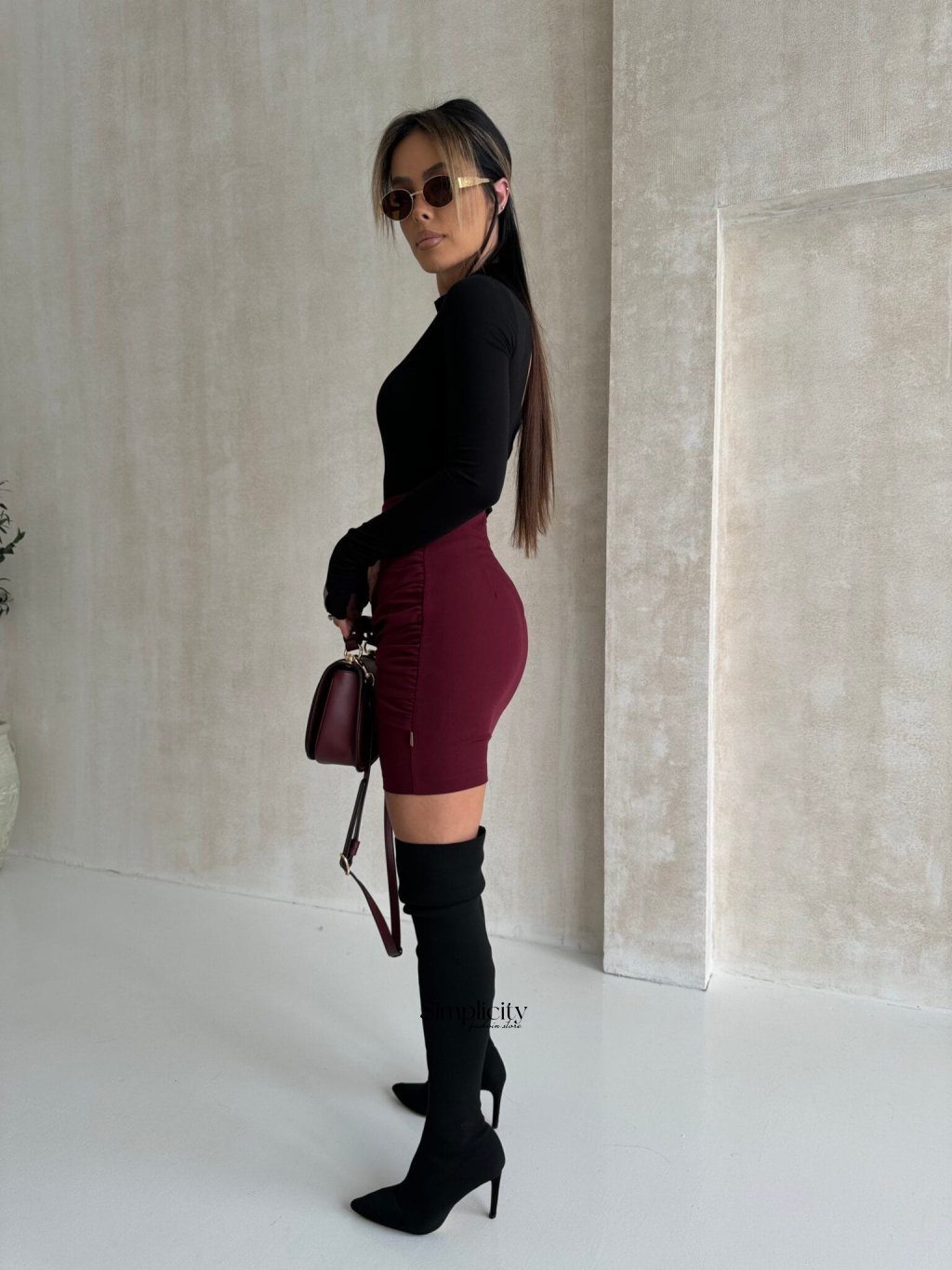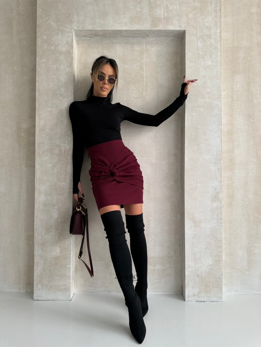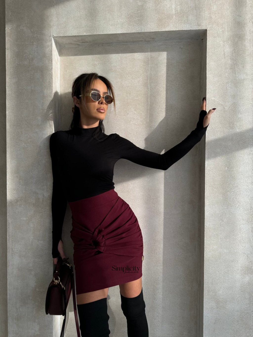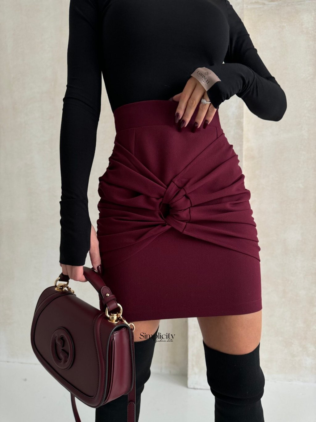 Štýlová minisukňa s jemným volánom vpredu, ktorý krásne tvaruje postavu, a ozdobným detailom s očkami, ktorý dodáva jedinečný nádych. Kratší strih dokonale zvýrazňuje nohy. Táto sukňa je perfektnou voľbou na večierky, večery alebo ležérne outfity, ktoré kombinujú pohodlie so ženským šarmom.