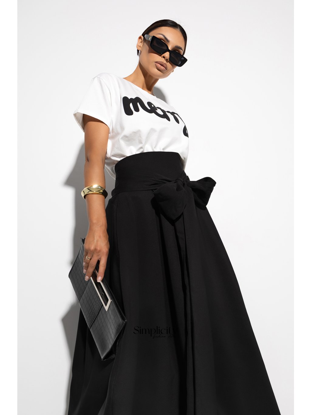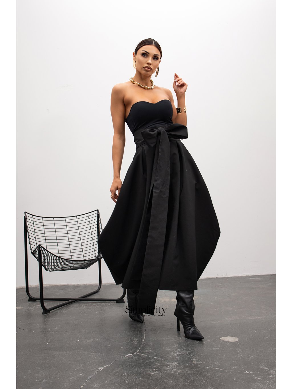 Bublinková sukňa je vyrobená z mierne stuženej, no jemne splývavej látky, vďaka čomu si zachováva svoj charakteristický zaoblený tvar. Od pása sa mierne rozširuje a vytvára jemnú balónovú siluetu, ktorá dodáva vzhľadu ľahkosť a sofistikovanosť. Najvýraznejším prvkom je veľká, efektná mašľa v páse. Túto mašľu je možné uviazať v páse, čím sukňa získa osobný vzhľad – od dokonale symetrického až po ležérnejší, jemnejší tvar. Mašľa krásne zvýrazňuje pás, slúži ako dekoratívny prvok a celkovému vzhľadu dodáva elegantný, mierne divadelný nádych. Sukňa je ideálna na večerné, sviatočné a špeciálne príležitosti, ale v závislosti od látky a doplnkov môže dosiahnuť aj modernejší a módnejší vzhľad. Perfektne sa hodí k priliehavému topu, ktorý zachováva proporcie a zdôrazňuje bublinkový efekt.