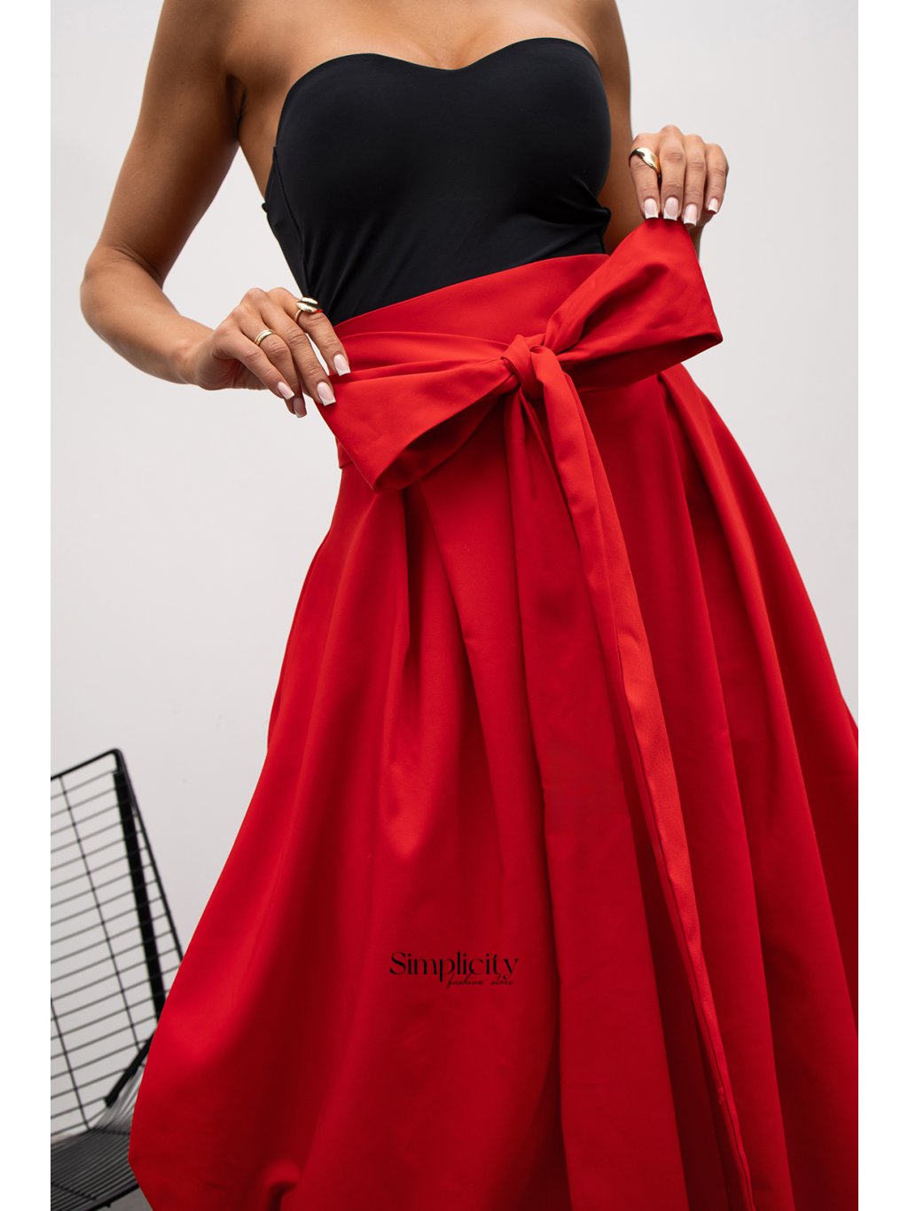Bublinková sukňa je vyrobená z mierne stuženej, no jemne splývavej látky, vďaka čomu si zachováva svoj charakteristický zaoblený tvar. Od pása sa mierne rozširuje a vytvára jemnú balónovú siluetu, ktorá dodáva vzhľadu ľahkosť a sofistikovanosť. Najvýraznejším prvkom je veľká, efektná mašľa v páse. Túto mašľu je možné uviazať v páse, čím sukňa získa osobný vzhľad – od dokonale symetrického až po ležérnejší, jemnejší tvar. Mašľa krásne zvýrazňuje pás, slúži ako dekoratívny prvok a celkovému vzhľadu dodáva elegantný, mierne divadelný nádych. Sukňa je ideálna na večerné, sviatočné a špeciálne príležitosti, ale v závislosti od látky a doplnkov môže dosiahnuť aj modernejší a módnejší vzhľad. Perfektne sa hodí k priliehavému topu, ktorý zachováva proporcie a zdôrazňuje bublinkový efekt.