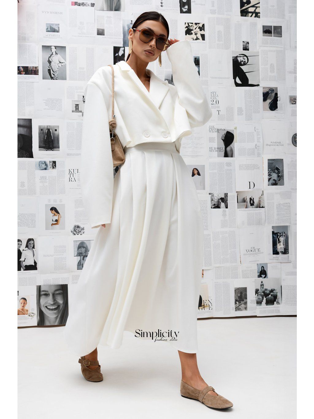 Kombinuje ľahkú látku s rafinovaným, rozšíreným strihom. Sukňa Soft Aura je navrhnutá tak, aby lichotila postave bez obmedzení a zabezpečila pohodlie aj počas dlhých dní. Je perfektnou sukňou do práce, na obchodné stretnutia a na elegantný každodenný outfit. V kombinácii s bundou Soft Aura vytvára súpravu, ktorá vyniká svojou jemnosťou a dôrazom na detail a spĺňa potreby žien hľadajúcich noblesu a modernosť.