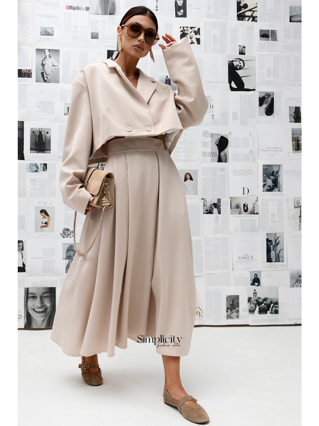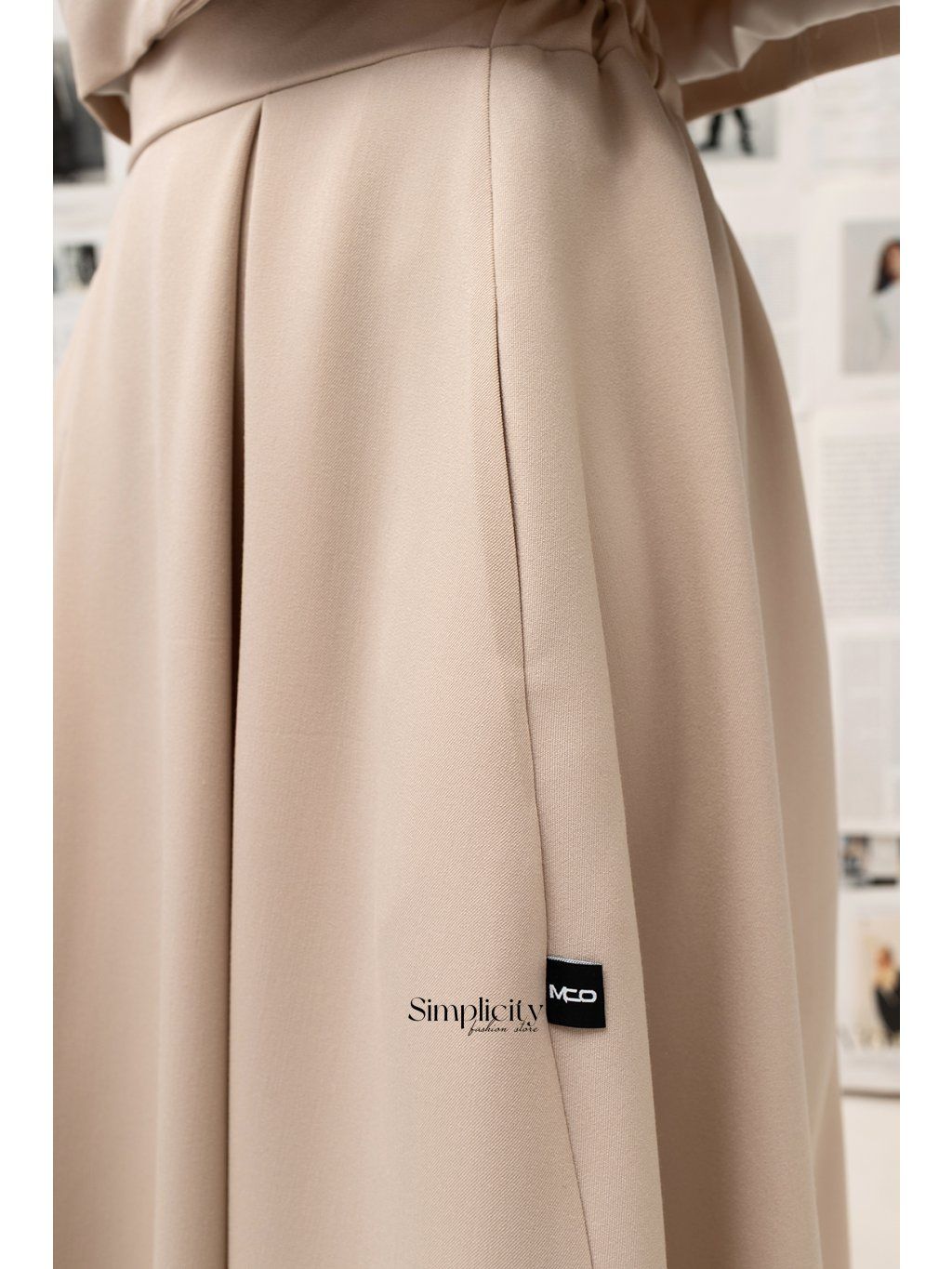 Kombinuje ľahkú látku s rafinovaným, rozšíreným strihom. Sukňa Soft Aura je navrhnutá tak, aby lichotila postave bez obmedzení a zabezpečila pohodlie aj počas dlhých dní. Je perfektnou sukňou do práce, na obchodné stretnutia a na elegantný každodenný outfit. V kombinácii s bundou Soft Aura vytvára súpravu, ktorá vyniká svojou jemnosťou a dôrazom na detail a spĺňa potreby žien hľadajúcich noblesu a modernosť.