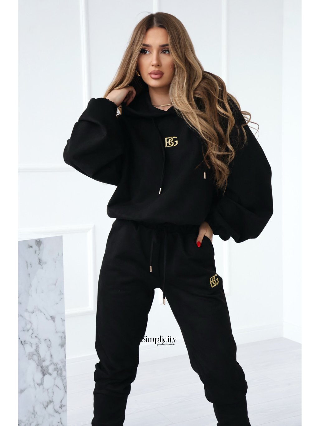 Mikina a nohavice majú zlatú výšivku BG a sťahovacie šnúrky na kapucni a v páse. Tepláková súprava je zakončená elastickými manžetami.