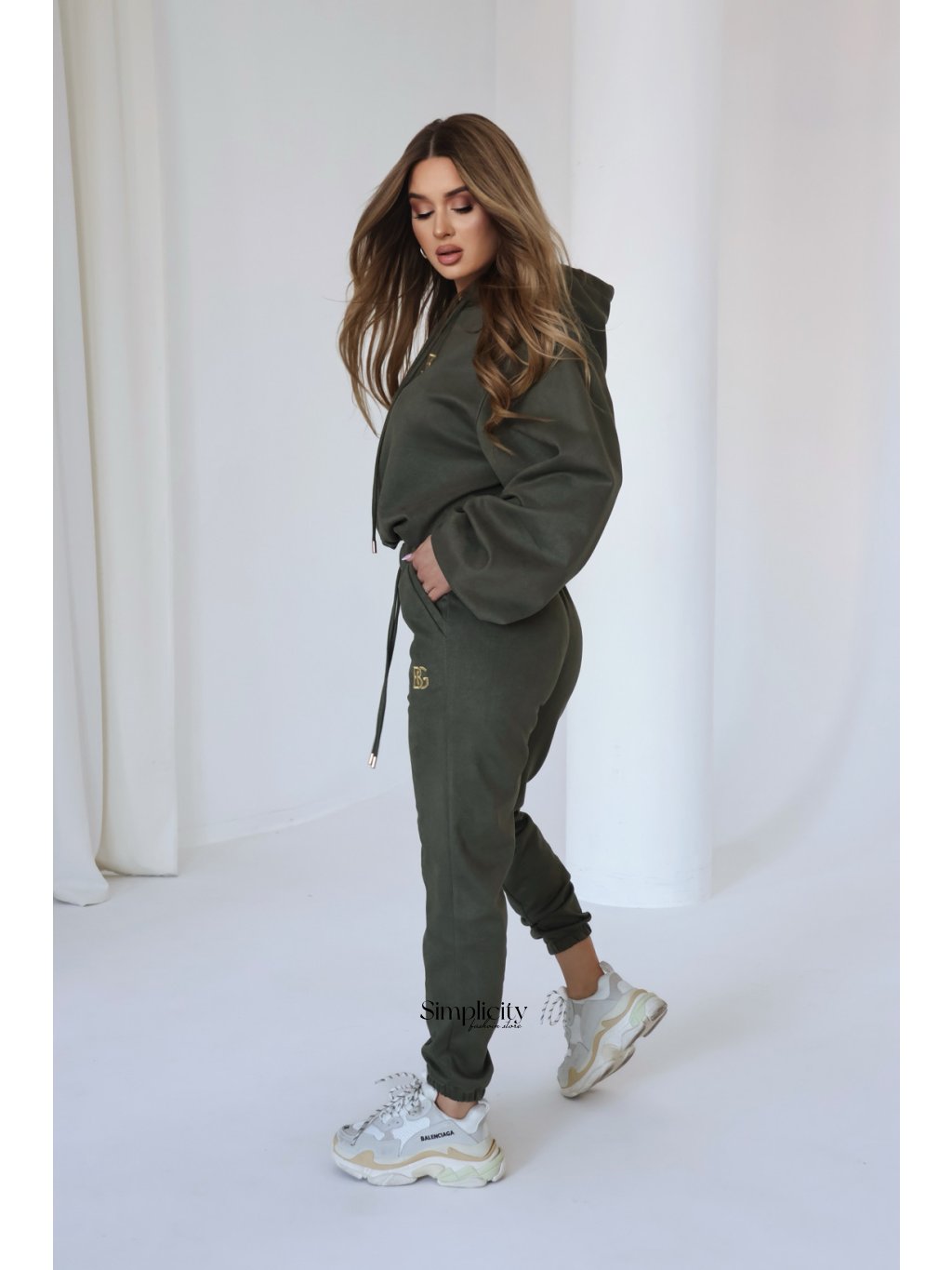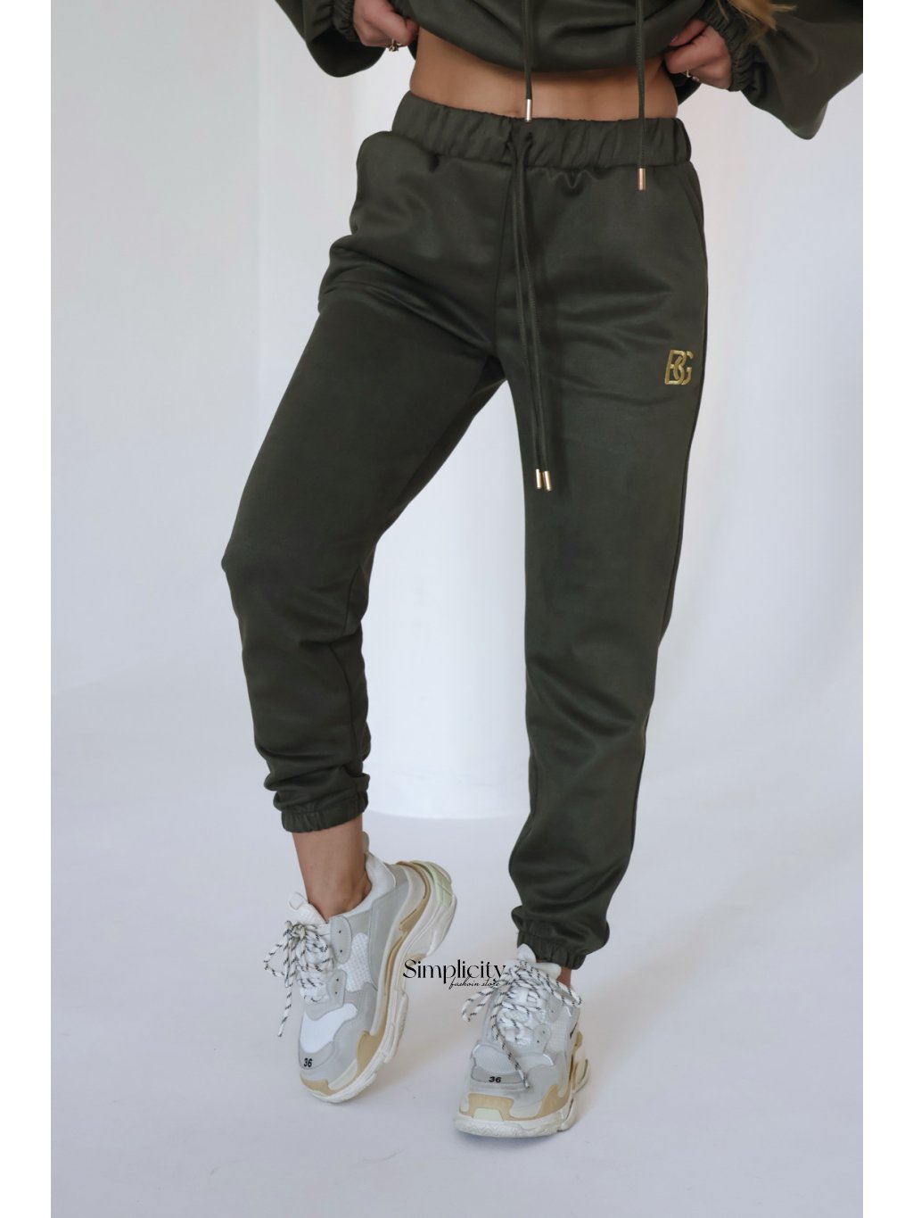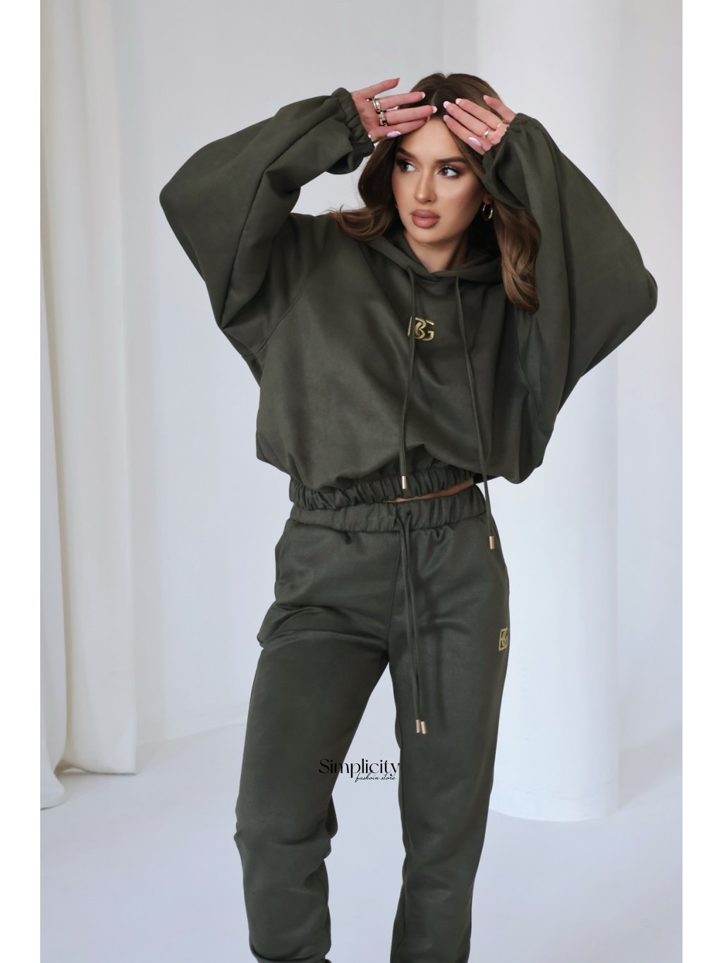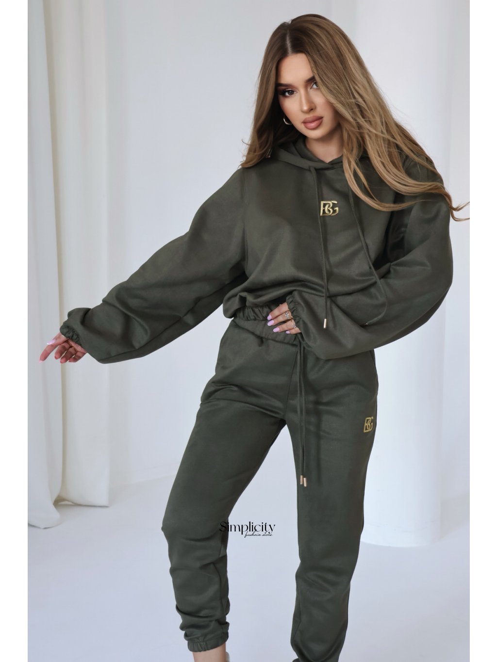 Mikina a nohavice majú zlatú výšivku BG a sťahovacie šnúrky na kapucni a v páse. Tepláková súprava je zakončená elastickými manžetami.