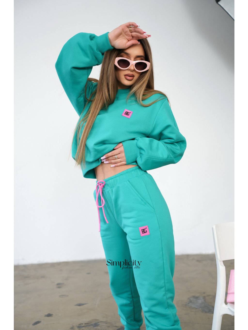 Nepodšitá bavlnená tepláková súprava BG GELLY. Mikina a nohavice sú ozdobené ružovou nášivkou s logom BG Brandenburg Couture s gélovým efektom. Mikina a nohavice sú zakončené sťahovacou šnúrkou. Mikina nemá kapucňu. Nohavice majú elastický pás a ružovú sťahovaciu šnúrku.