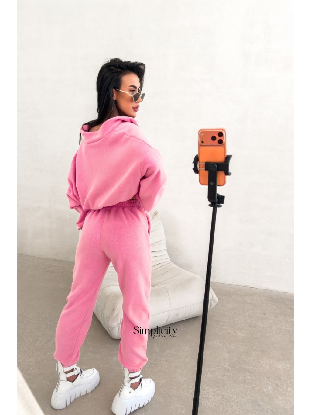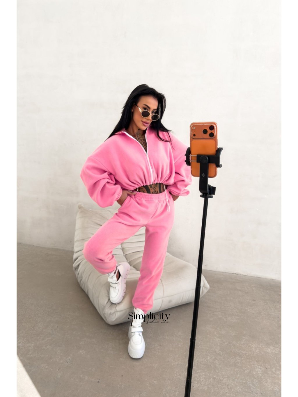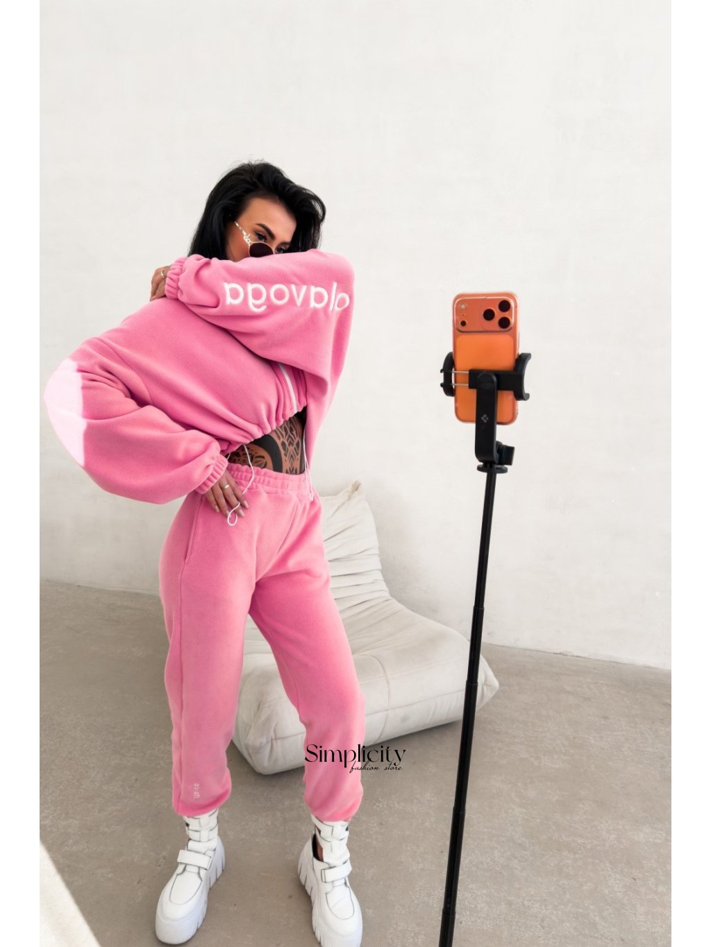 Vrch: Skrátený sveter na zips s pohodlným oversize strihom. Zvýraznené vyšívané logo OLAVOGA na rukáve.Spodná časť: Nohavice s vysokým pásom a elastickými klinmi. Zúžené nohavice vytvárajú modernú siluetu.
