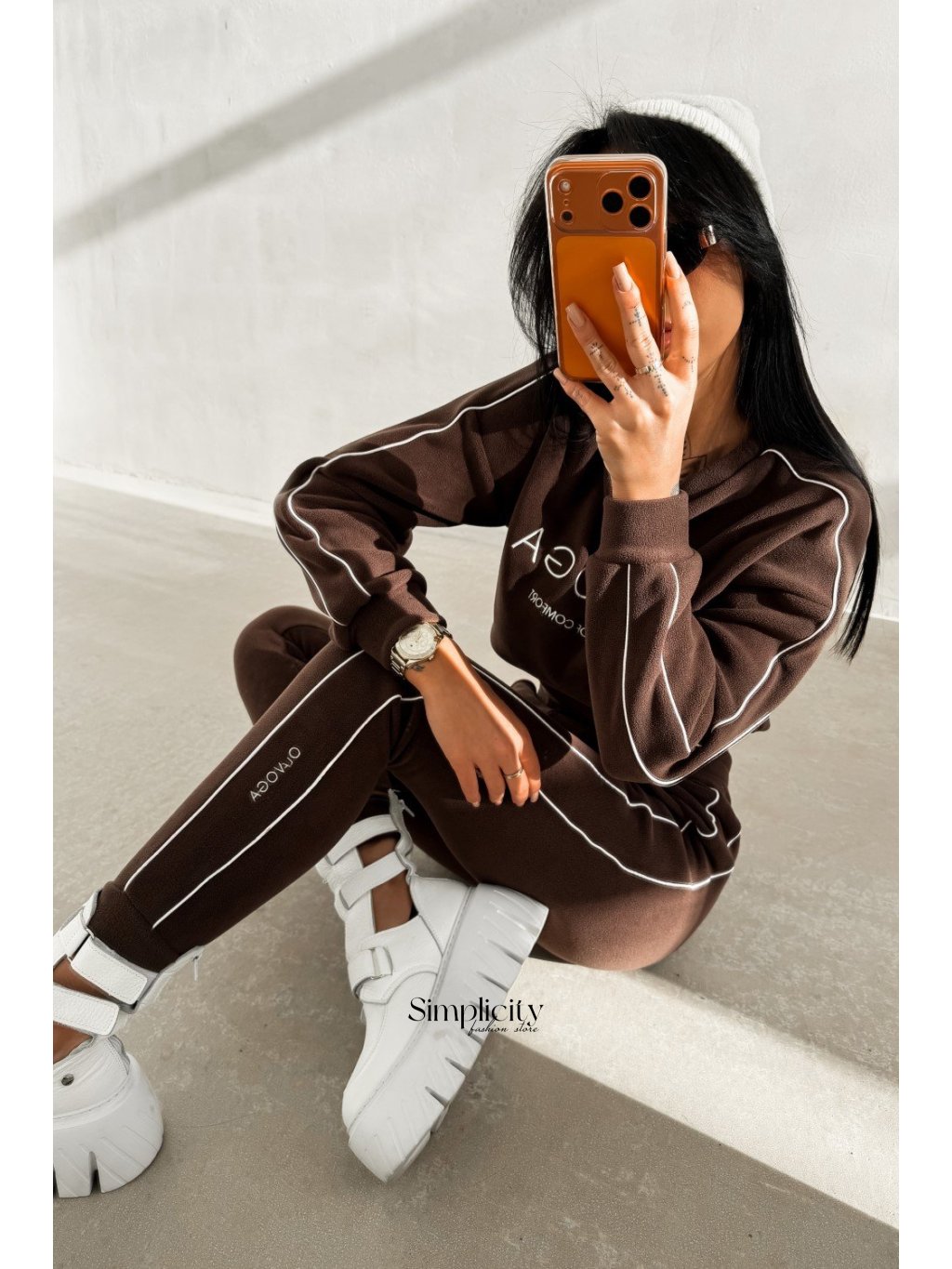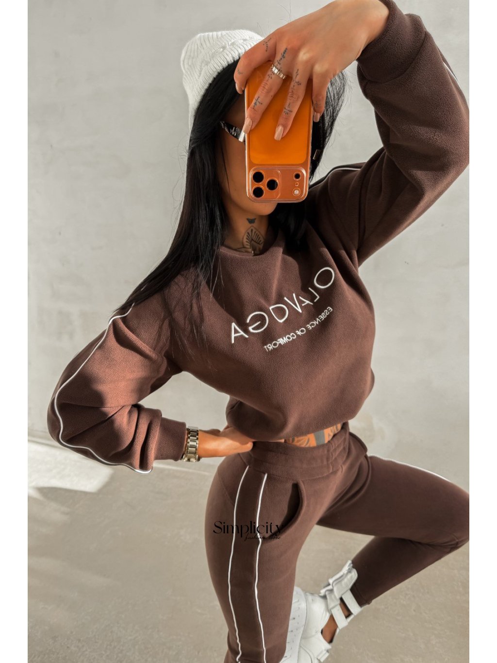 Vrch: Sveter s okrúhlym výstrihom a elastickými manžetami. Vpredu vyrazené logo OLAVOGA a nápis „ESSENCE OF COMFORT“, na rukávoch tenké kontrastné pruhy.