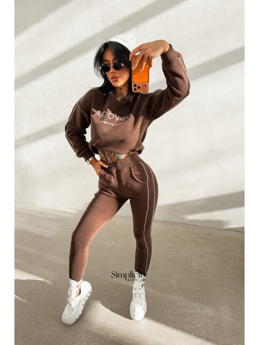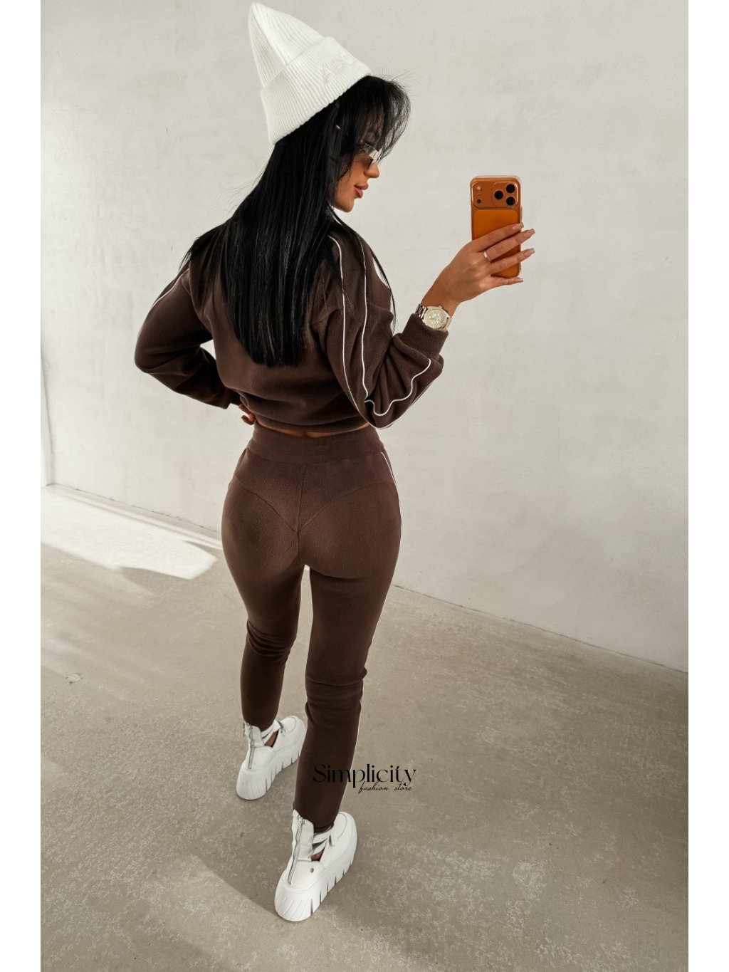 Spodná časť: Nohavice s elastickým pásom, bočnými vreckami a štýlovým zadným švom , ktorý dodáva strihu extra charakter.