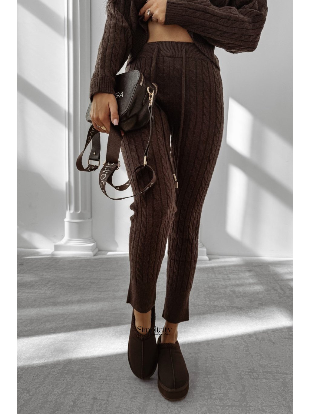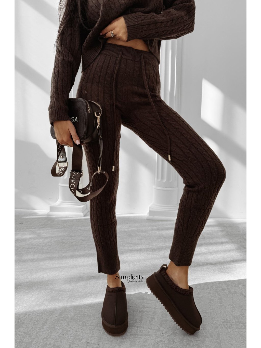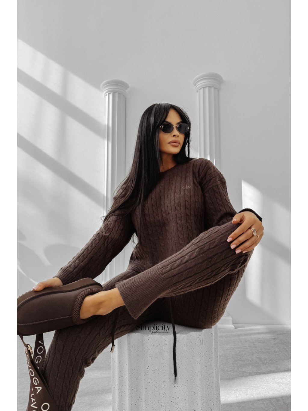 Pohodlná dámska súprava z mäkkého úpletu. Vrch: mikina. Spodný diel: nohavice s vysokým pásom. Zdobená potlačou loga na prednej strane, ktorá jej dodáva športový a moderný charakter.