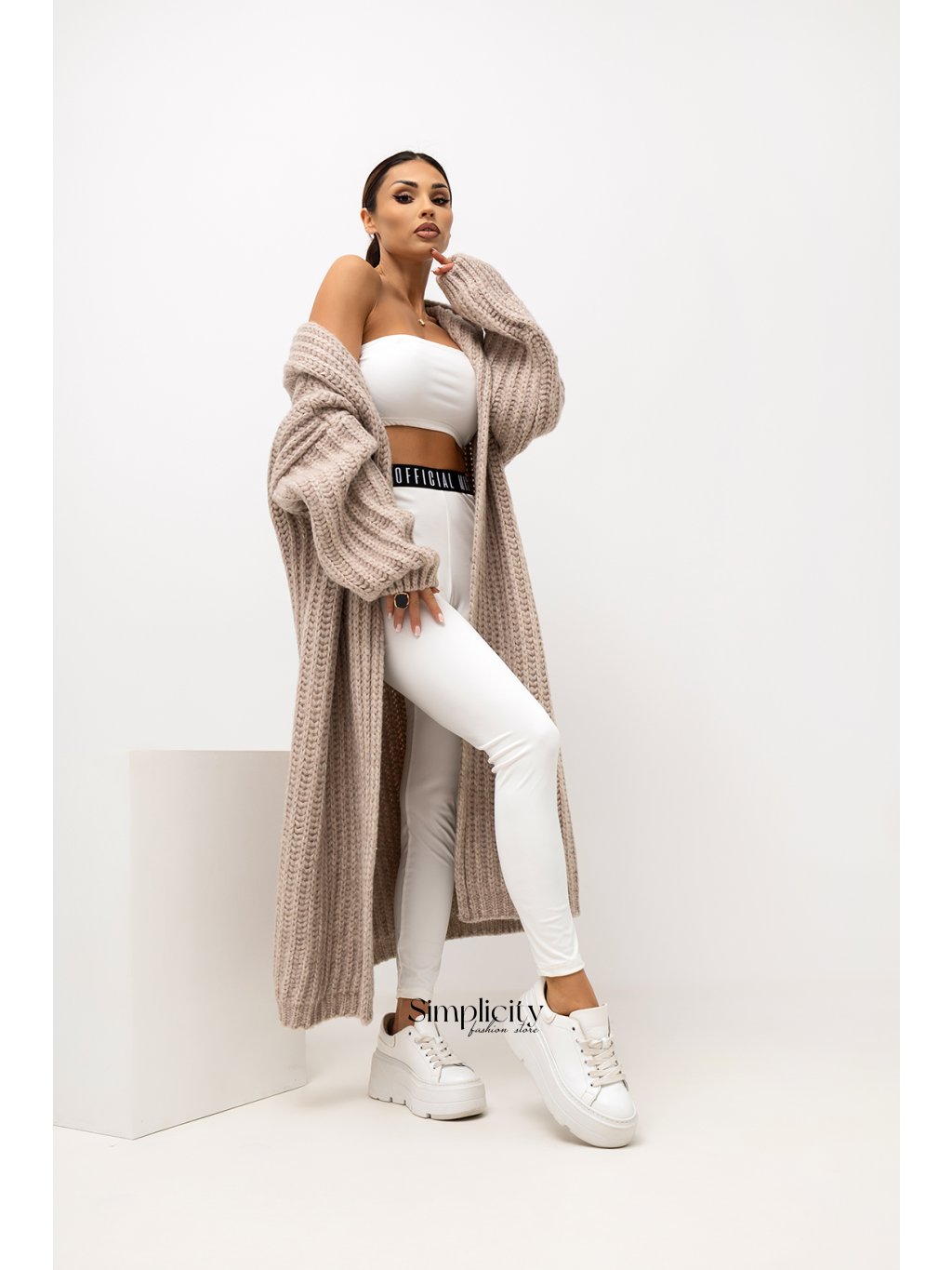 Štýlový a neuveriteľne pohodlný dlhý sveter s kapucňou, vyrobený z hrubej, mäkkej priadze. Vďaka voľnému, oversized strihu krásne splýva a umožňuje úplnú slobodu pohybu. Charakteristická väzba mu dodáva módny a útulný pocit. Je dostupný v rôznych farbách, od klasických tlmených odtieňov až po trendy pastelové a žiarivé odtiene, je ideálny na každodenné nosenie alebo ako ľahká vrstva vrchného oblečenia v chladnejších dňoch. Perfektne sa hodí k legínam, džínsom, topu a teniskám alebo členkovým čižmám a je nevyhnutnou súčasťou šatníka na jeseň/zimu a chladnejšie jarné dni.