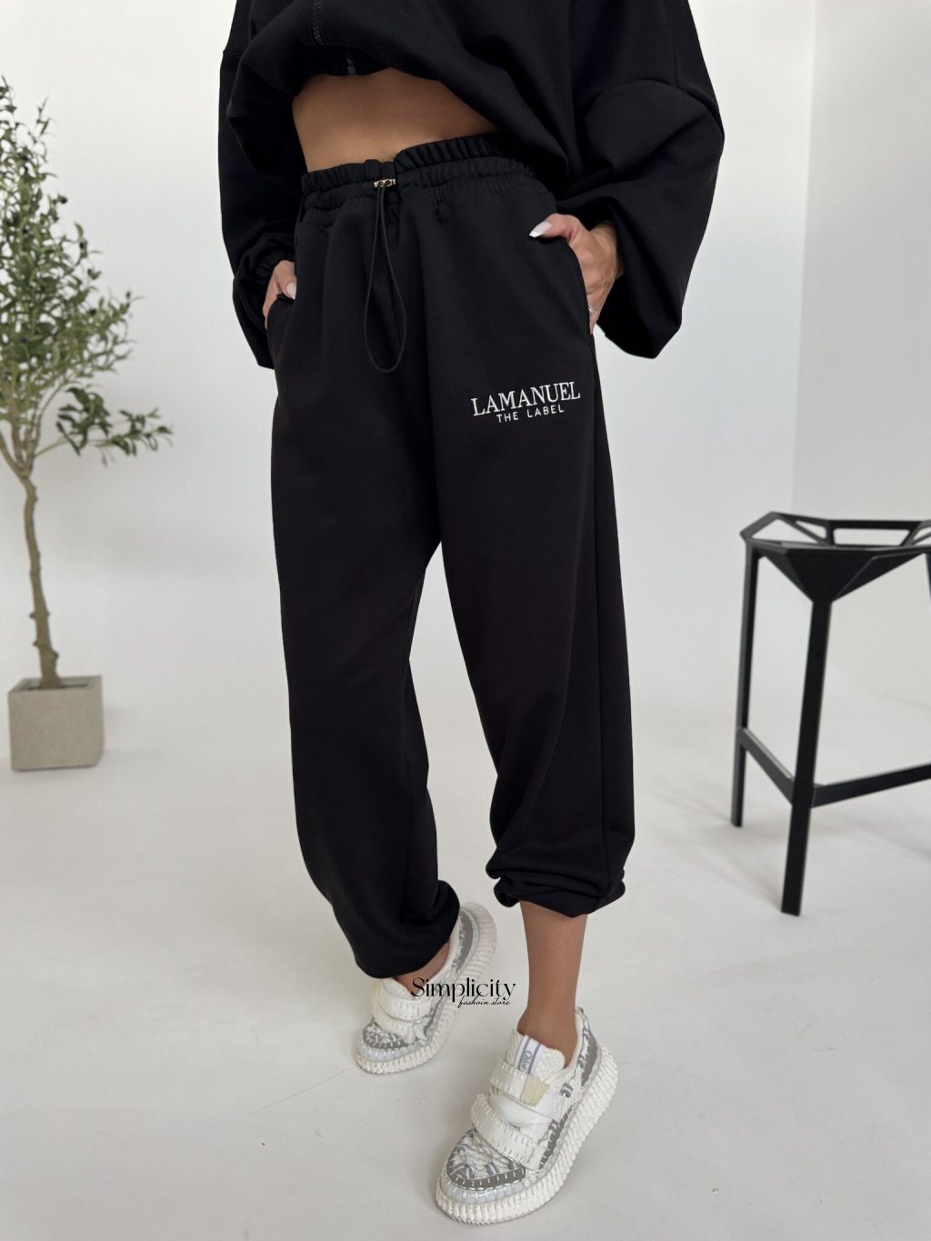 Široké oversize tepláky s vysokým pásom a elastickým pásom s dodatočnou šnúrkou na nastavenie. Široké, rovné nohavice a pohodlný strih zaisťujú pohodlie a slobodu pohybu. Na boku je viditeľné logo LAMANUEL, ktoré bezproblémovo ladí s mikinou CLOUDY a vytvára tak ucelený, módny outfit. Napriek širokému strihu nohavice perfektne sedia od veľkosti XS-L.