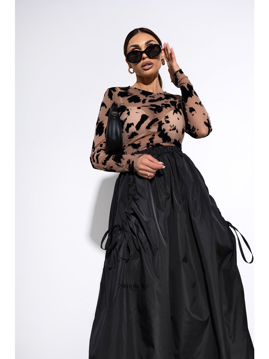 Priliehavý strih krásne splýva bez toho, aby obmedzoval pohyb. Dlhé, priehľadné rukávy dodávajú nádych ľahkosti.