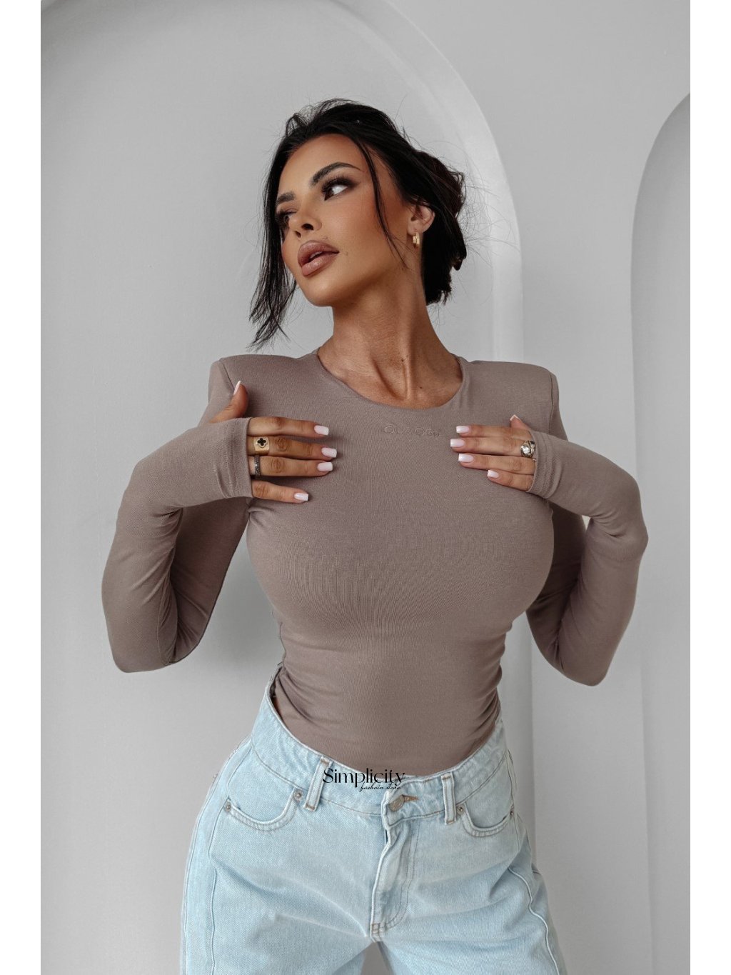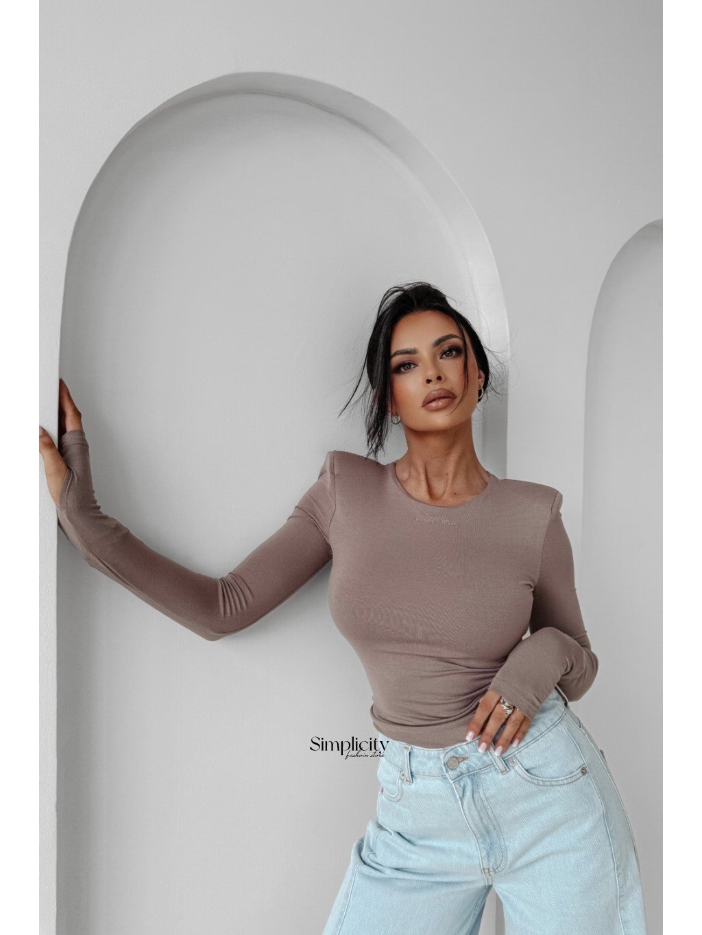 Dokonale padnúci top s dlhým rukávom vyrobený z mäkkej, na dotyk príjemnej viskózy. Ramenné vypchávky na ramenách dodávajú elegantnejší vzhľad. Prednú časť zdobí minimalistické, vyšívané logo OLAVOGA.