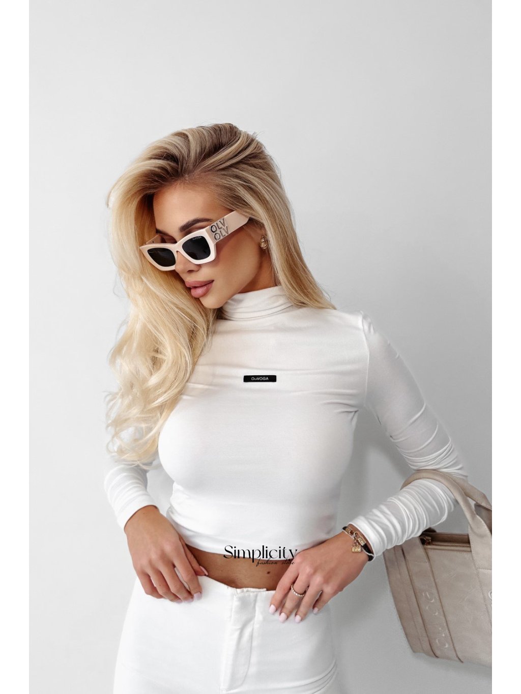 Vyrobené z kvalitného elastického materiálu. Rukávy majú decentné volánové zdobenie. Prednú časť zdobí minimalistická čierna etiketa s logom značky OLAVOGA .