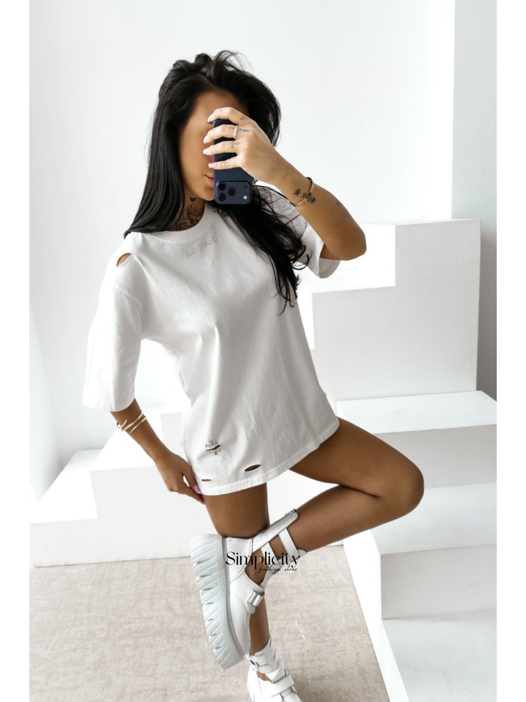 Strih: Nadrozmerný strih s predĺženými líniami, ktoré poskytujú ležérnu a modernú siluetu.