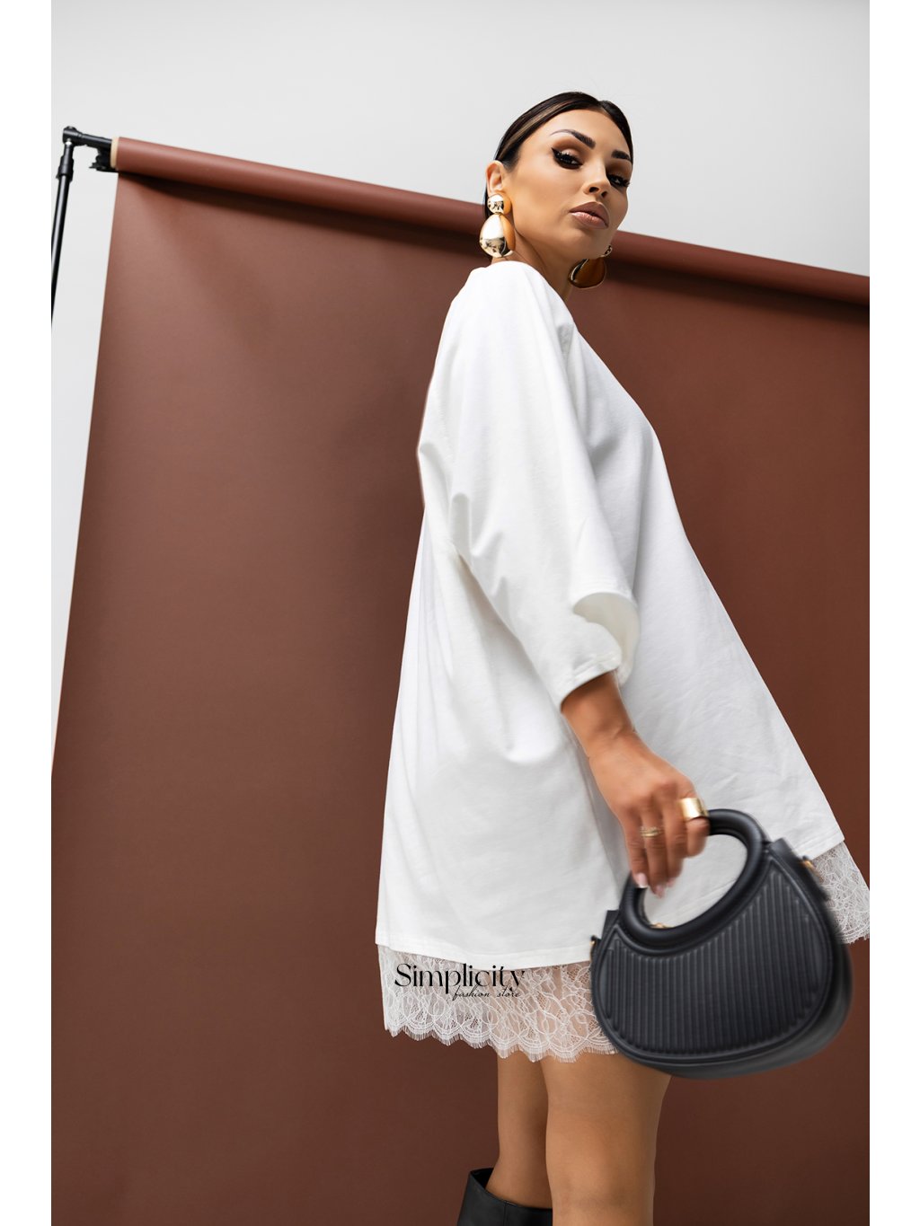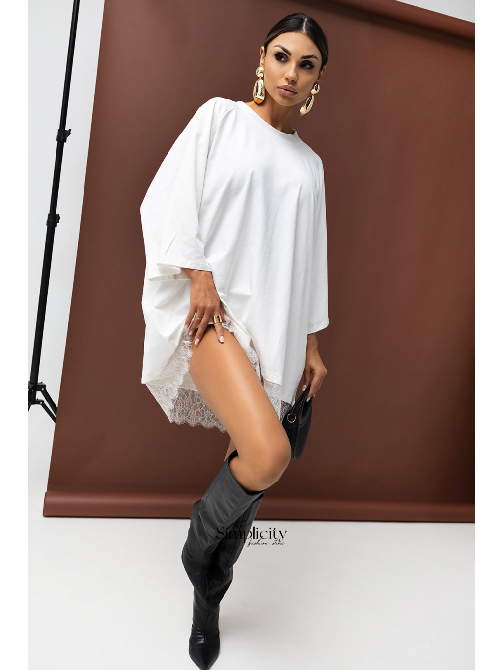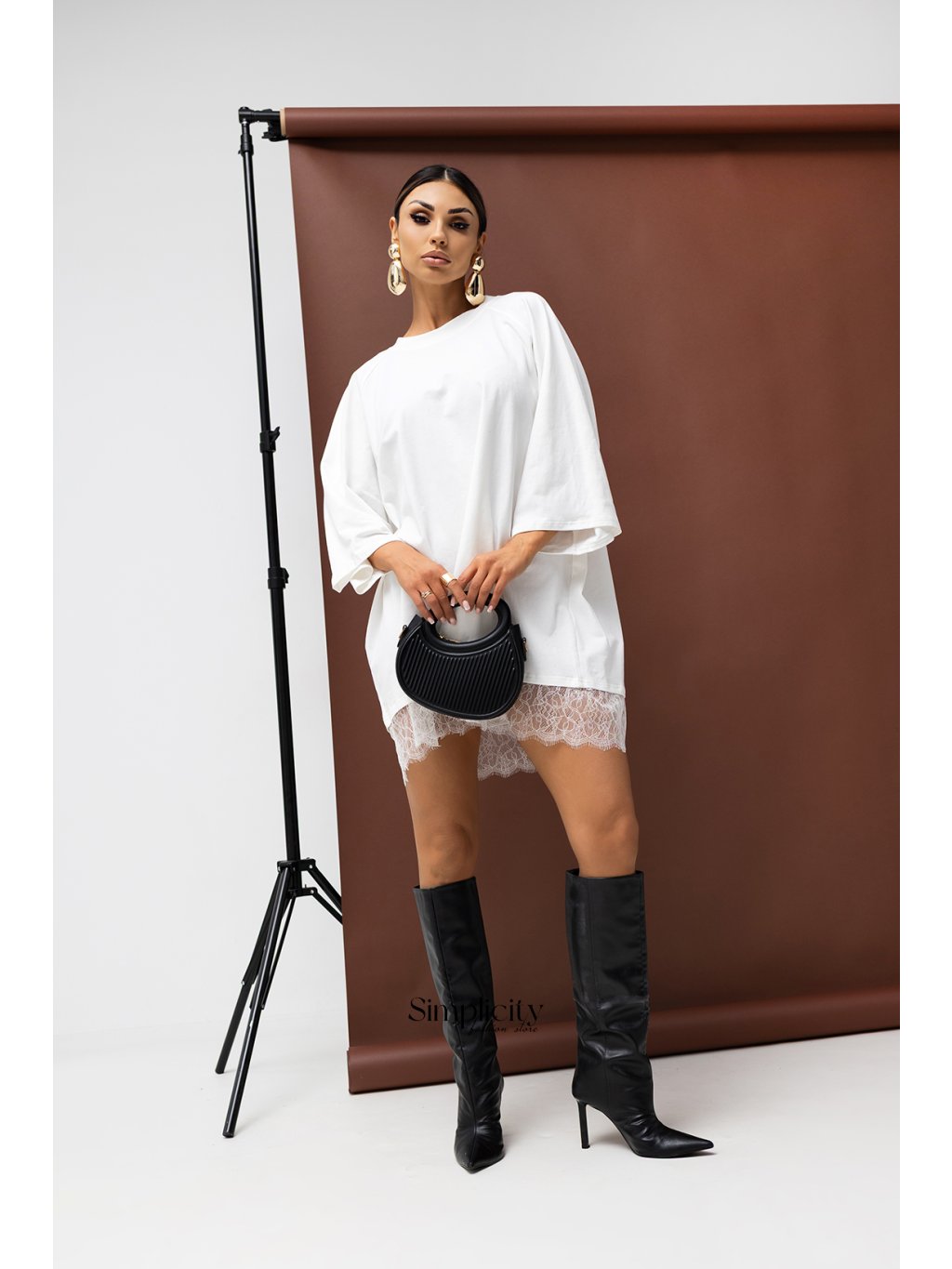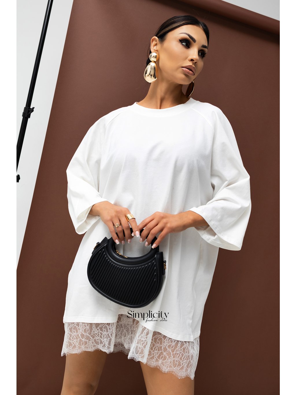 Toto nadrozmerné základné tričko v dvoch klasických farbách – bielej a čiernej – je kombináciou jednoduchosti a decentnej elegancie. Je vyrobené z mäkkej, priedušnej bavlny, zaisťuje celodenné pohodlie a dokonale splýva, čím vytvára ležérny, mierne voľný efekt. Jemná čipka na leme dodáva tričku jedinečný, ženský nádych. Tento detail narúša minimalistický štýl základného trička a dodáva mu mierne romantický a elegantný nádych. Nadrozmerný dizajn ho robí vhodným pre rôzne typy postáv a vďaka všestranným farbám – bielej a čiernej – sa ľahko kombinuje s takmer akýmkoľvek outfitom. Vyzerá skvele s džínsami, šortkami, sukňou alebo cez legíny. Je to perfektná voľba na každý deň, do práce alebo na stretnutie s priateľmi – klasické, no zároveň s charakterom.