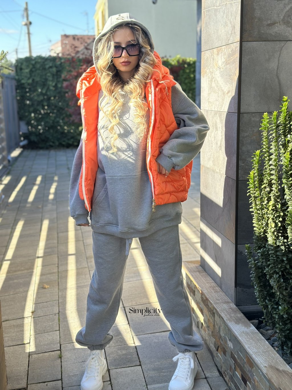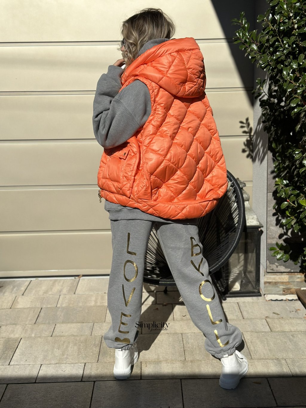 Štýlová prešívaná vesta v trendovej oranžovej farbe.