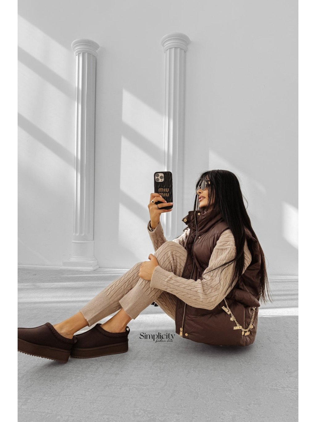 Voľná prešívaná vesta, ktorú možno perfektne kombinovať so svetrom alebo bundou. Vyrobená z ľahkého, no zároveň teplého materiálu. Zapínanie na zips, bočné vrecká a decentné logo na prednej strane.